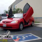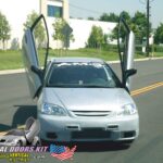 Not only is our kit easy to install, but it is also easy to operate. Just open your door like normal until it stops, then raise your door. Every hinge comes with a very strong shock that will take most of the door’s weight, making it easy to raise the door up. Our kits also give you the freedom to open your door as a factory and get in and out without raising the door too, unlike most other imitation manufacturers’ kits. Your vehicle will keep its factory look and feel while you are driving, but the moment you stop and raise your doors, you will experience a whole new level of attention that no other upgrade can give you. We have a few videos that will give you a good idea of how the Bolt-on Lambo Door Conversion works.