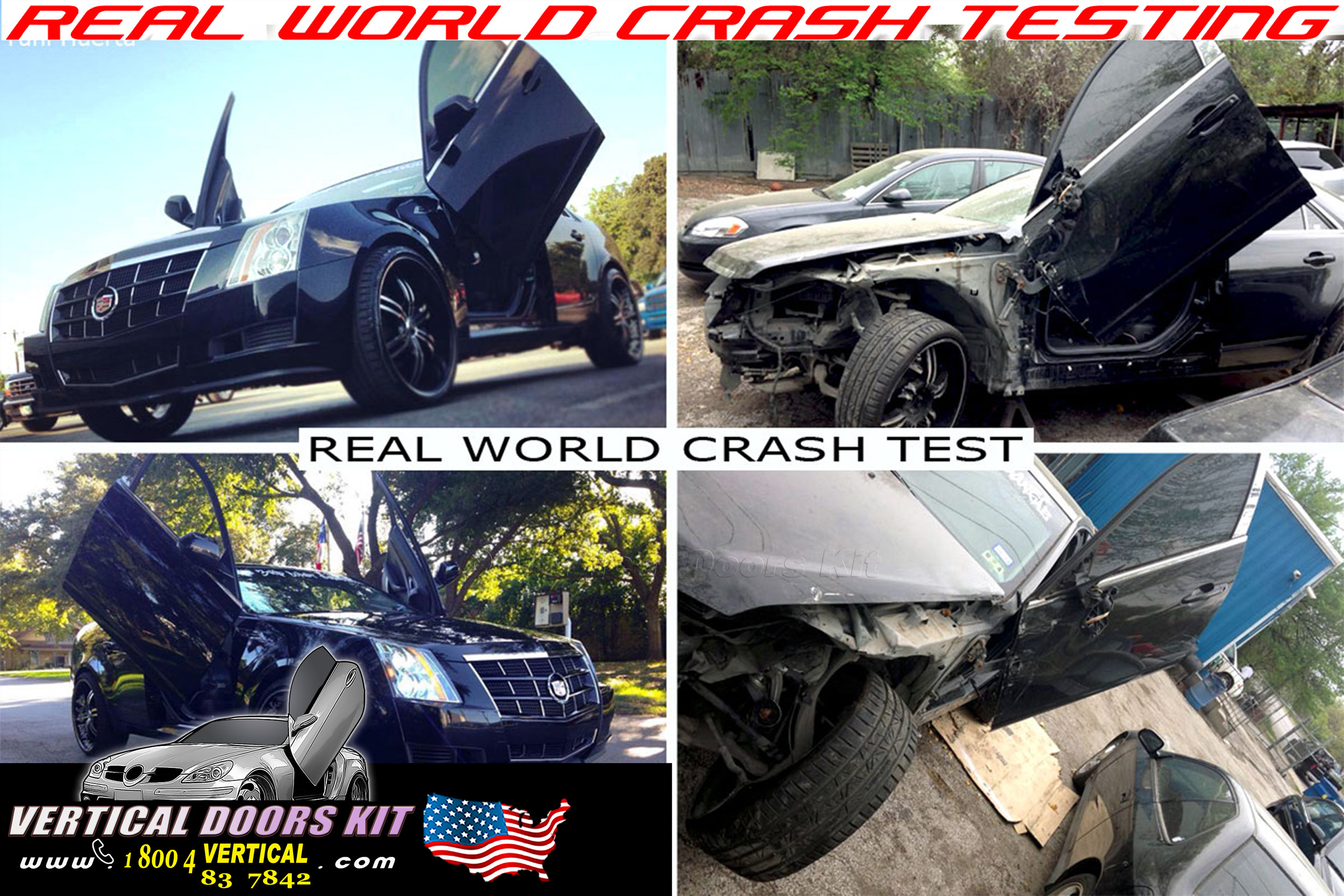 Yuni is one of our customers, as you can see there is extensive damage around the fender and door area but the Vertical Doors, Inc. kit still works.